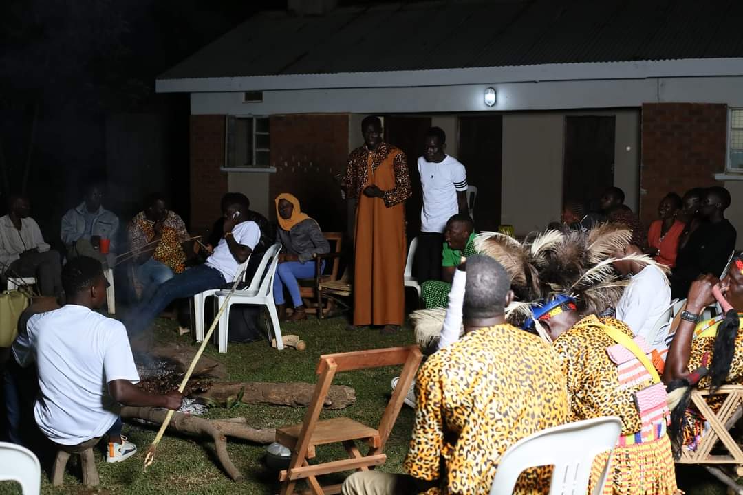 Participants sit around fire where stories and practices of the Ateker Peoples are told and done. Local brew (ajon) is drunk during the bonfire, along with roasting of meat.